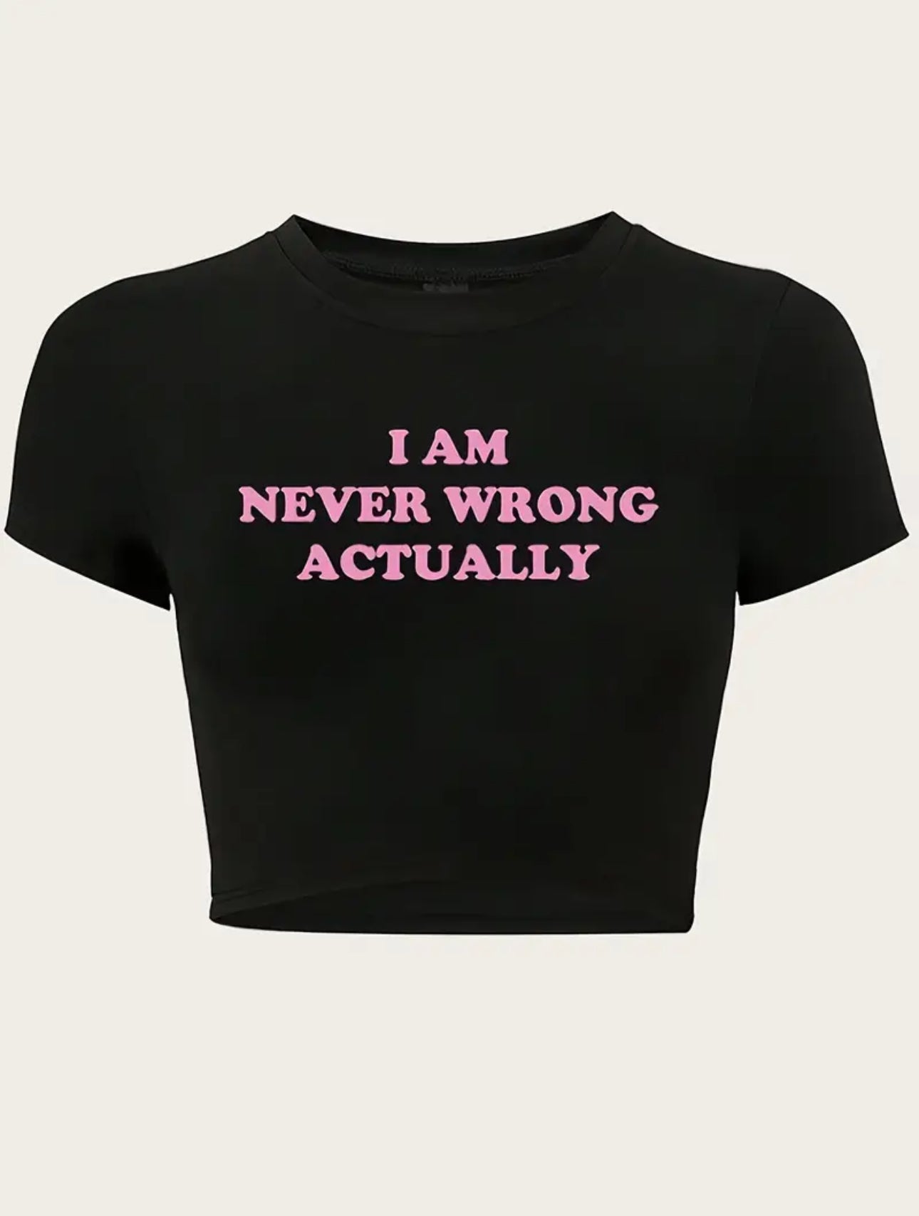 A slim-fit cropped T-shirt with bold letter print. Soft, lightweight, and perfect for warm days or layering