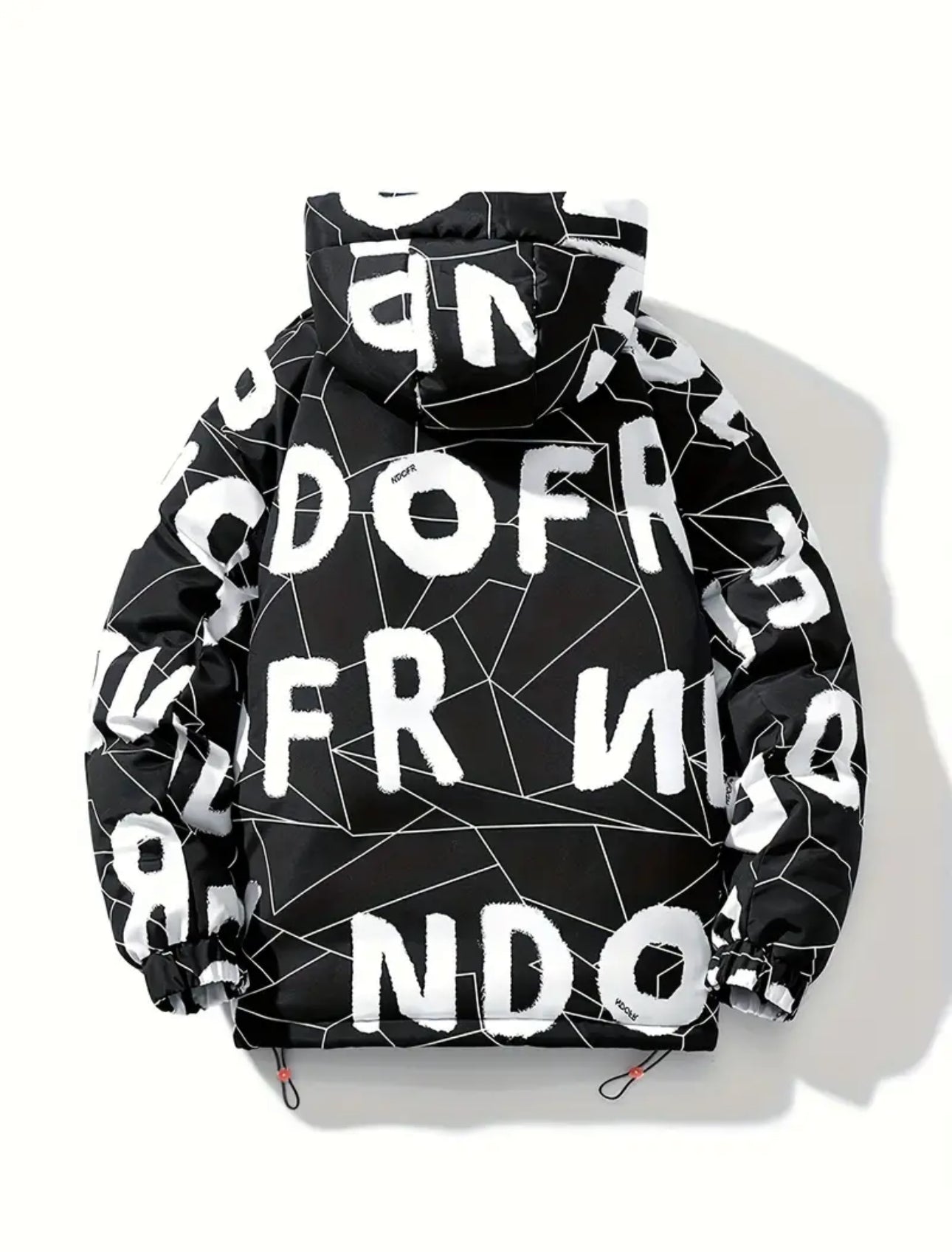 Brave the cold in style with the Men’s Titan Black Hooded Jacket, designed for winter urban streetwear. This heavyweight coat features a full-zip front closure, loose fit, and long sleeves, adorned with a striking white letter pattern. Crafted from durable fabric, it offers warmth and a bold look for any cold-weather outing.