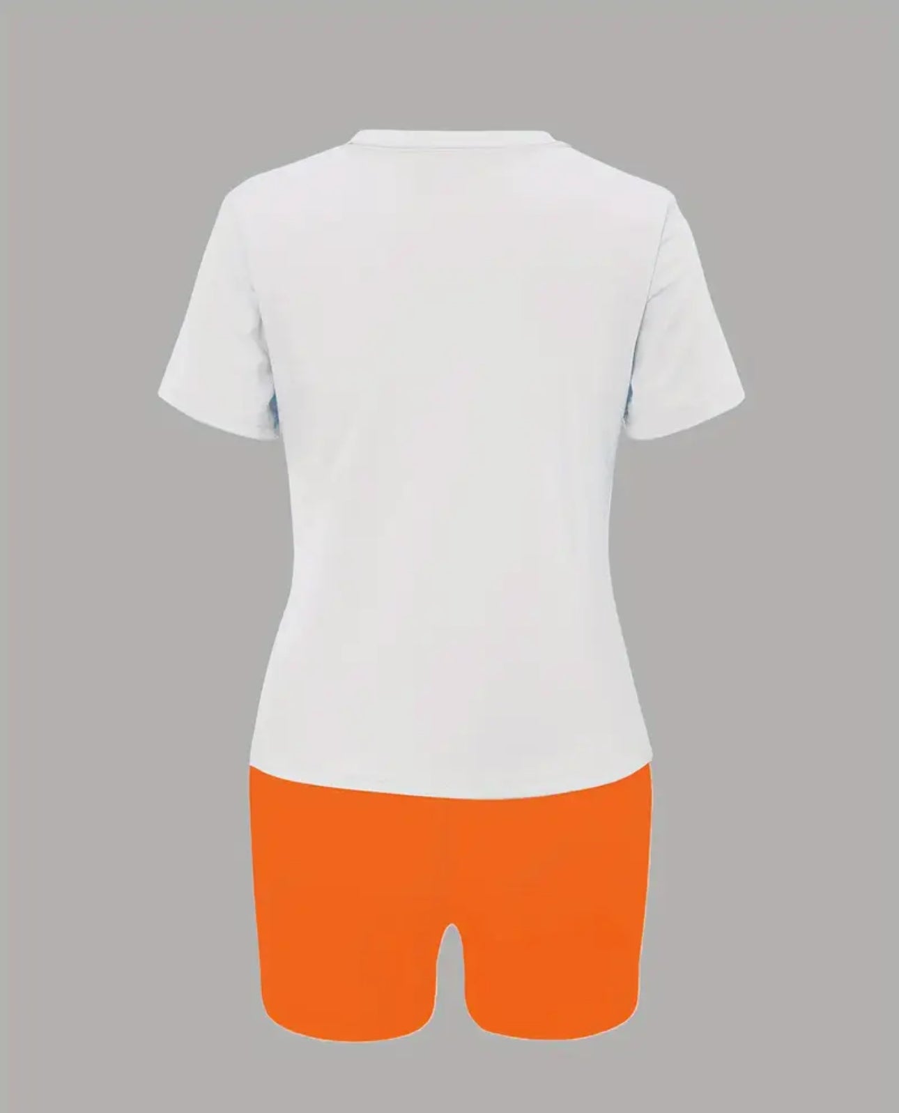 Plus Size Letter Print Two-Piece Set – Tee & Shorts