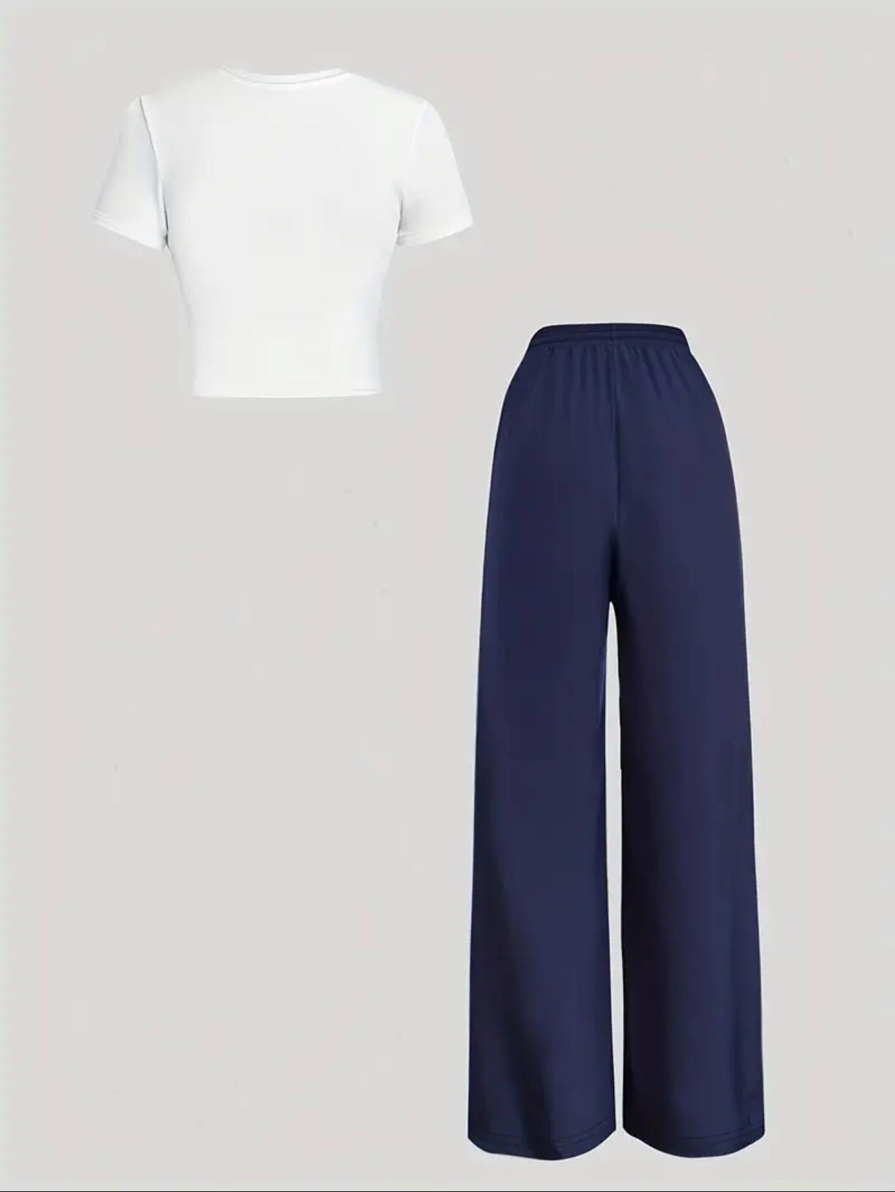 Laid-back 2-piece set with cropped tee and striped wide-leg bottoms. Comfy, bold, everyday fit.