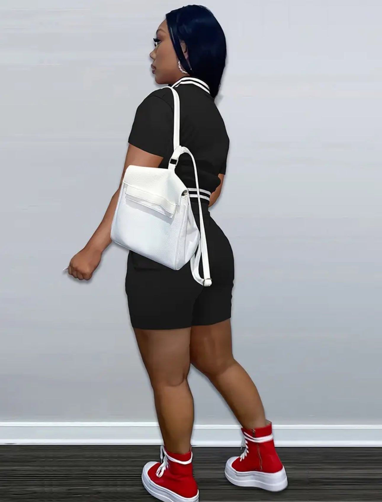 TYN Women’s Color-Block Baseball Set | Jacket & Shorts 2-Piece