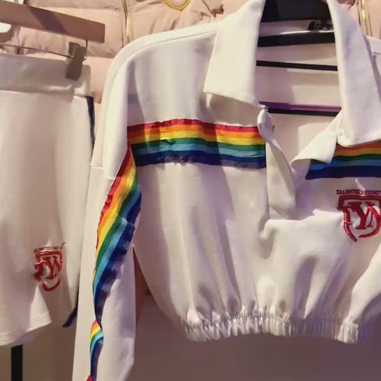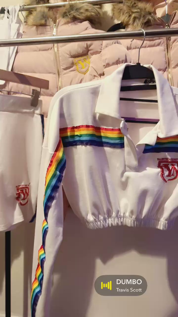 Statement stripes with a feminine edge. This women’s TYN co-ord features a cropped collared top with long sleeves and elastic hem, paired with comfy high-waisted shorts. Finished with red TYN embroidery on both pieces. Bold, breathable, and made to move.